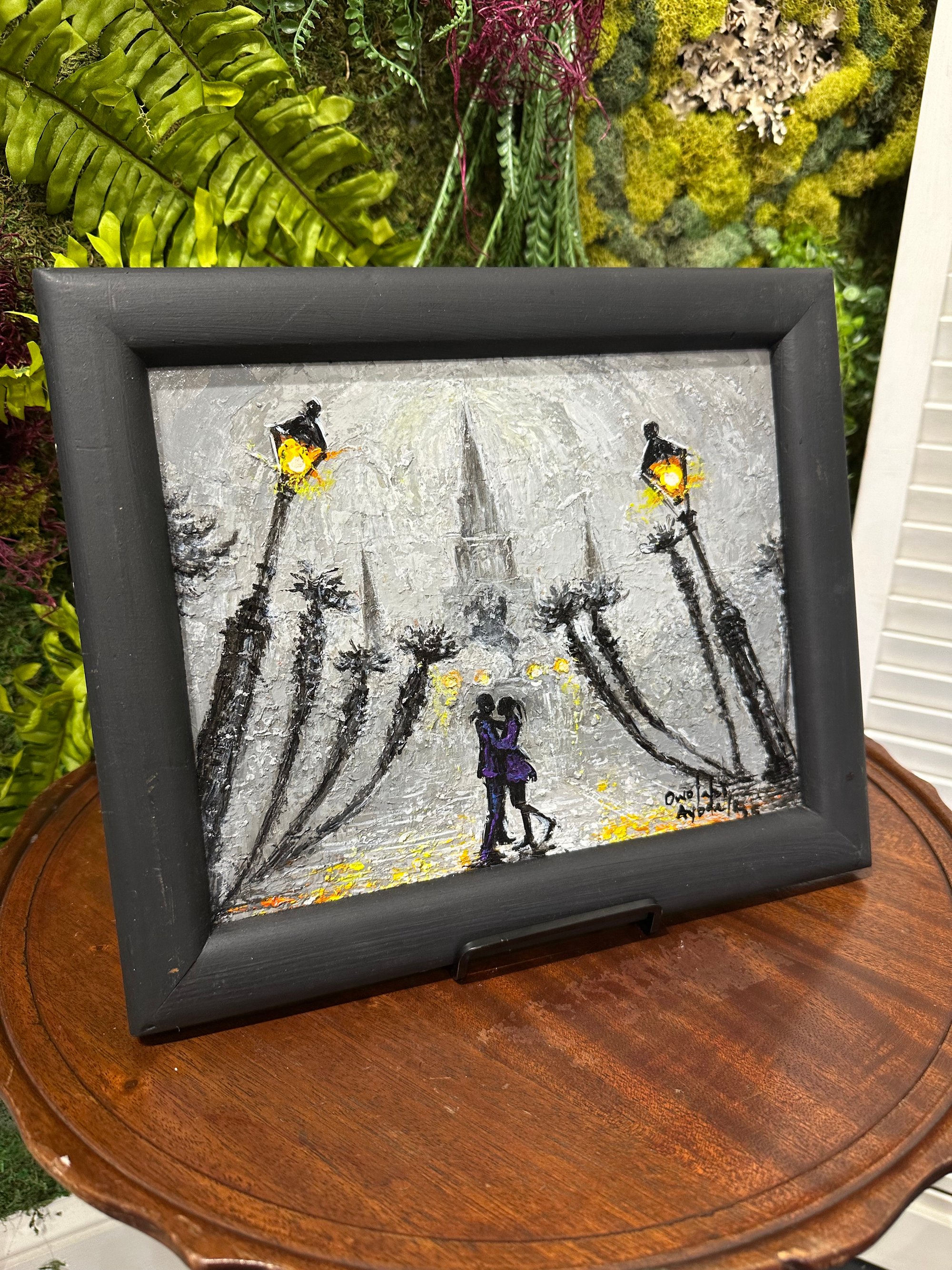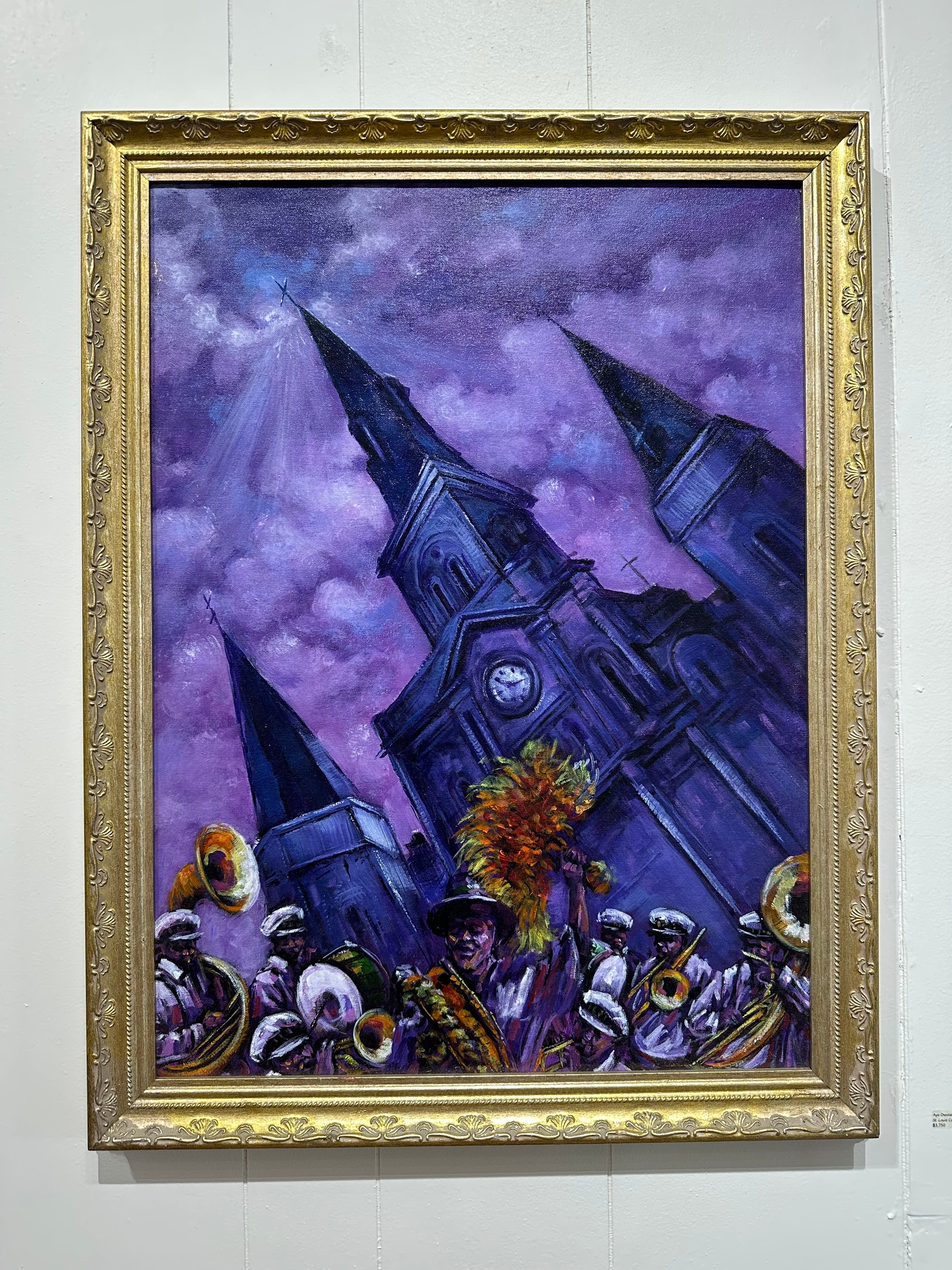 Ayodele Owolabi was born in Nigeria, where he studied painting and advanced techniques before moving to New Orleans. He has established himself as one of the most prolific voices for New Orleans through his work depicting second lines, Mardi Gras Indians, French Quarter street scenes, and the more whimsical "Jazz Cats". He has worked with the city on multiple murals, sells his work in-person at the Frenchmen Art Bazaar, and is a regular participant in Jazz Fest, among other local and international accomplishments.